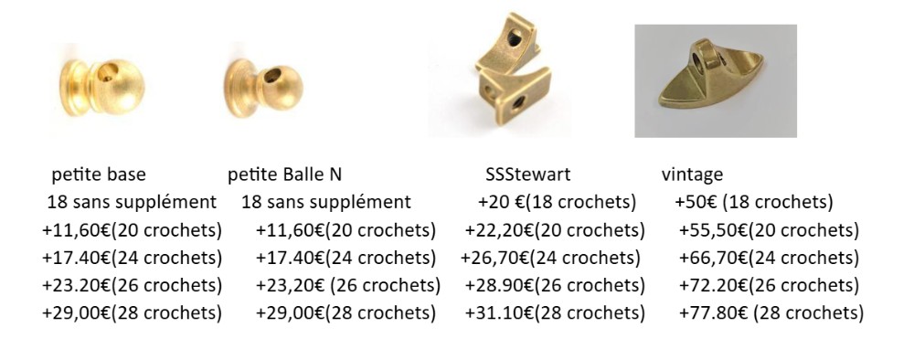 Accastillage Laiton 18 crochets, écrous "tulipe" et support "ball base large". avec jante en robonier